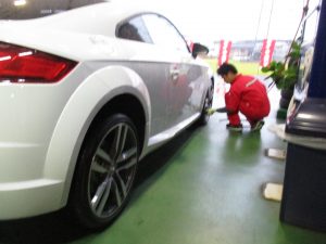 アウディTT☆新品タイヤ交換☆ 2018/12/07 新車装着タイヤです☆1本パンクしてしまったのでご注文頂きました☆ 19インチ大きいですね~(^^♪ 他のタイヤもエアチェック!! ご来店いただき誠にありがとうございました☆