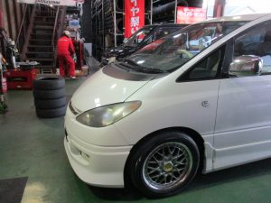 エスティマ☆中古タイヤ交換☆ 2019/03/09 常連のお客様お越しくださいました☆ お知り合いの方のお車を乗ってきてくださいました(^^)/ ミシュランの215/55R17で4本交換します☆いつも当店をご利用下さり誠にありがとうございます☆